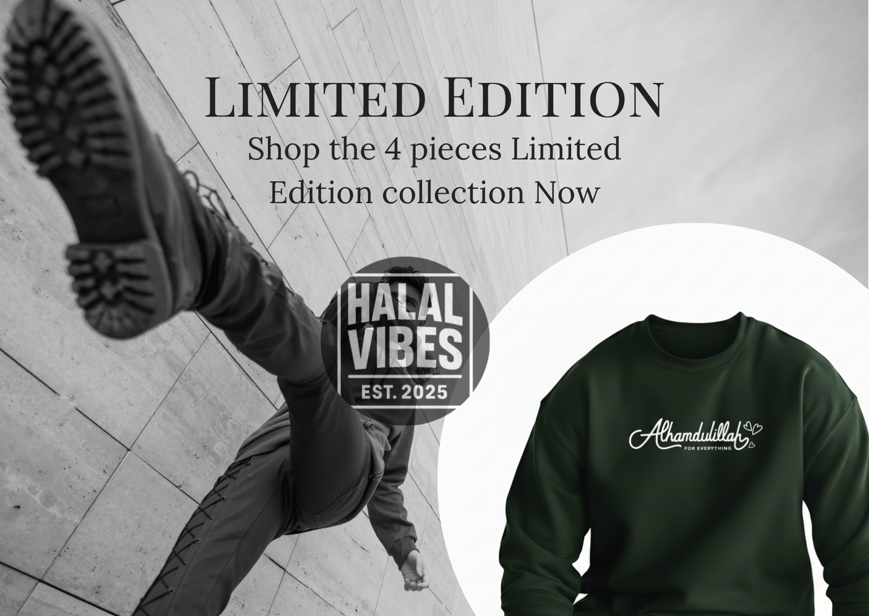 Where meaning meets exclusivity. The Halal Vibes Limited Edition Collection is a curated lineup of small-batch, premium streetwear pieces that blend minimalist design with deep spiritual identity. Each drop is crafted with purpose — rooted in faith, gratitude, and authenticity — and once it’s gone, it’s gone.