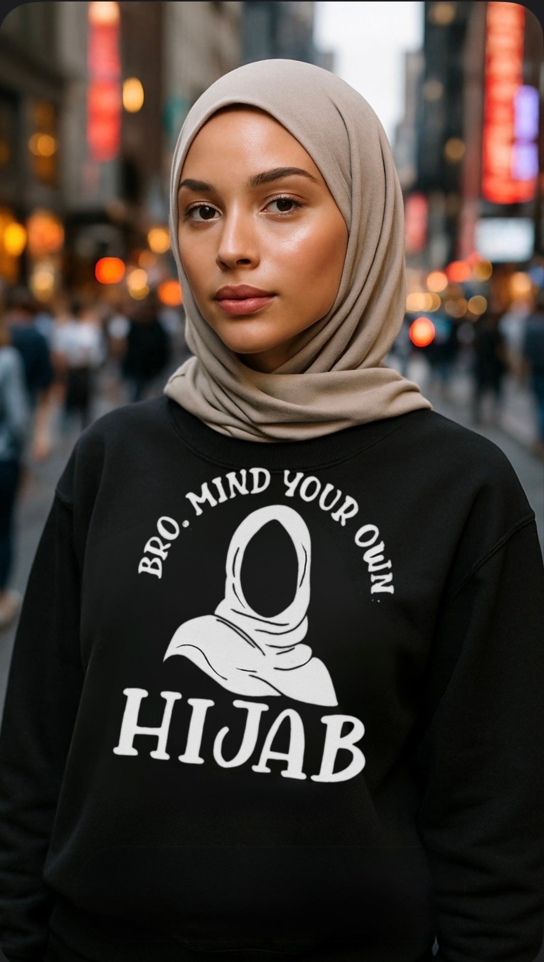 The Mind Your Own Hijab Sweater is unapologetic in message and effortless in comfort. Featuring a bold hijab graphic with a cheeky reminder, it blends lightweight warmth with a strong statement.